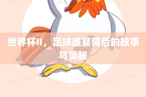 世界杯II是一场足球盛宴,背后蕴藏着无数故事与奥秘。这场比赛不仅是球员竞技的舞台,更是文化、历史和经济交织的展示。从筹备到举办,每个细节都充满悬念和精彩,反映了足球运动在全球的影响力。在这背后,有球员的汗水与拼搏,有教练的智慧与决策,也有无数支持者的热情与期待。世界杯II展现了足球运动的魅力,成为全世界共同关注的焦点。