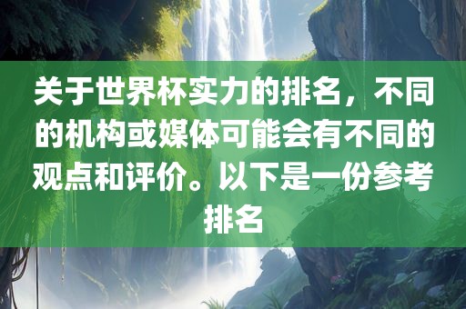 关于世界杯实力的排名,不同的机构或媒体可能会有不同的观点和评价。以下是一份参考排名